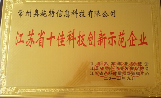 常州奧施特公司榮獲江蘇省十佳科技創(chuàng)新示范企業(yè)