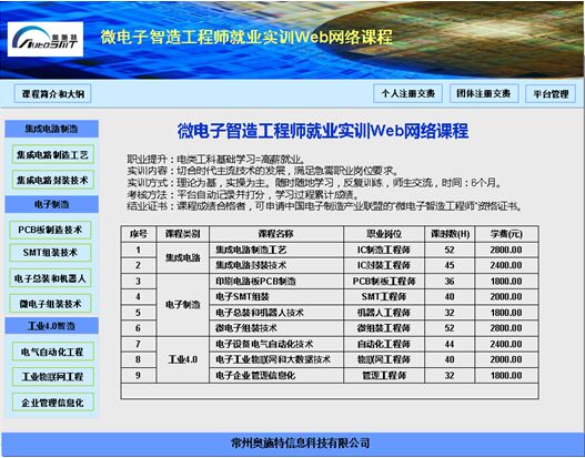 會中推出“微電子智造工程師就業(yè)實訓(xùn)Web網(wǎng)絡(luò)課程”,適合企業(yè)員工升級培訓(xùn)和在校生就業(yè)實訓(xùn),包括9門課程: