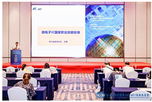 2024年9月13日,2024中國高端SMT學(xué)術(shù)會議(第18屆)在成都市舉辦,會議主題是微電子智造。常州奧施特公司技術(shù)總監(jiān)龍震作了“微電子IC國家職業(yè)技能標(biāo)準(zhǔn)和人才培養(yǎng)”報告。