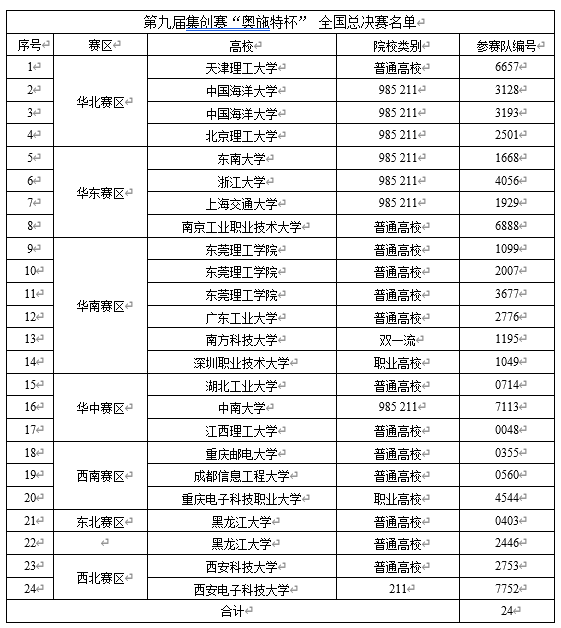 2025年7月11-29日 2025第九屆集創(chuàng)賽“奧施特杯” 華中、西南、華南、西北、華北、東北、華東7大分賽區(qū)比賽成功完成。有95所高校309支隊參加初賽,162支隊(52%)晉級參加分賽區(qū)比賽,24支隊(15%)晉級參加全國總決賽。