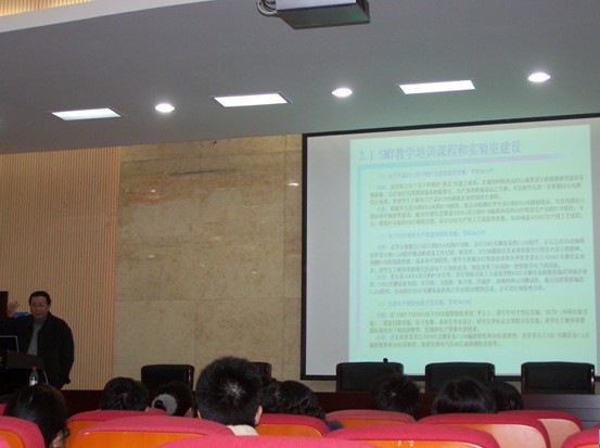 2011年12月14日,由高職委在重慶城市管理學(xué)院舉辦了全國物流、通信和電子制造師資培訓(xùn)會(huì)議,全國50余家高職院校參加。常州奧施特公司與重慶艾申特電子科技有限公司合作展出SMT實(shí)訓(xùn)生產(chǎn)線和“SMT專業(yè)技術(shù)資格證培訓(xùn)和考評系統(tǒng)AutoSMT VM1.1”,受到業(yè)內(nèi)專家和參展客戶的高度好評。應(yīng)邀龍緒明教授作“先進(jìn)電子SMT制造技術(shù)的發(fā)展”報(bào)告。