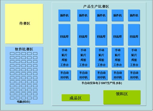 賽項主要任務是: 基于電子SMT制造職業(yè)技能大賽軟件平臺,完成電子制造技術理論考試;再在電子SMT制造職業(yè)技能大賽軟件平臺上,根據(jù)大賽組委會指定的電子產(chǎn)品的EDA設計文檔,完成SMT生產(chǎn)線制造工藝設計和設備編程設置(主要設備有:全自動絲印機、全自動貼片機、回流焊、插件機、波峰焊);在競賽現(xiàn)場設置的5條實體電子SMT生產(chǎn)線上(主要設備有:半自動絲印機、手工貼片、回流焊、插件機、手工焊接)生產(chǎn)出合格產(chǎn)品。